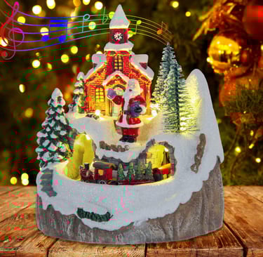 If you love holiday decorations that tell a story, this Red Christmas Village Church House will instantly capture your heart. Handcrafted from durable resin, it features a cheerful Santa Claus, a moving train, and soft LED lights that cast a warm, golden glow. The gentle holiday music completes the magic — transforming your mantel, table, or entryway into a miniature Christmas wonderland.
